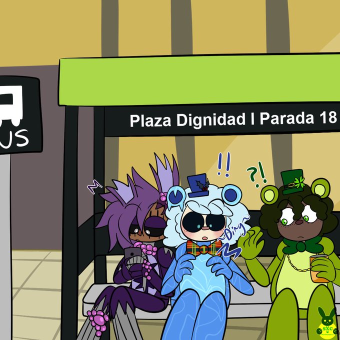 #fnafar #comic #gijinka #freddyfrostbear #toxicspringtrap #shamrockfreddy #grimfoxy #fanart