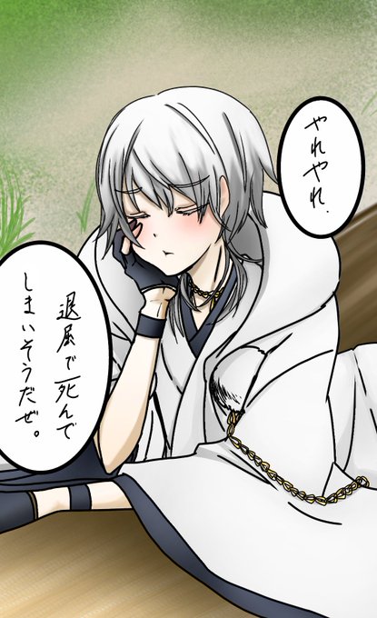ゴロゴロしながら退屈そうに物思いに耽る鶴丸です。