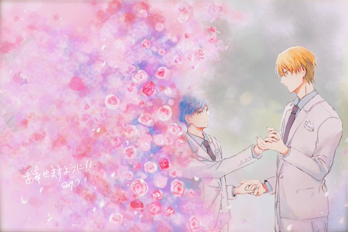 夏ちゃんと黄黒合作したーーー!! 楽しかった! 黄瀬:夏ちゃん @indigoBlue_7 黒子:棗 ステキな黄瀬くんの横に黒子っち添えられて嬉しい~~! 夏ちゃん、ありがとう! #黄黒の日2019 #黄黒の日