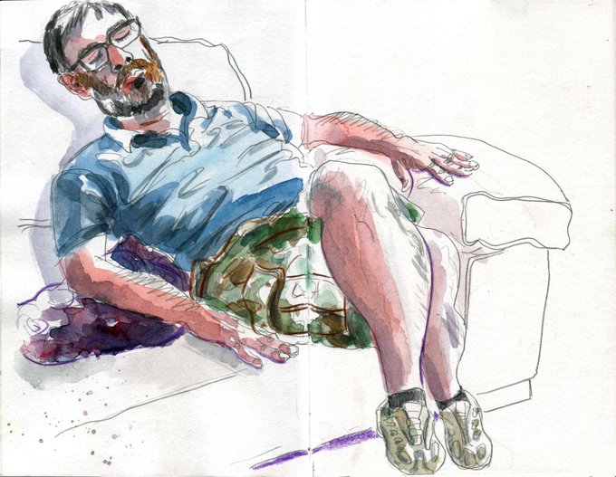 Siesta time for my brother in law #UrbanSketchers #USk #siesta #drawing #Pencildrawing #Watercolour