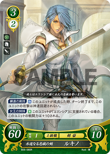 【カード紹介】エリンシアに忠誠を誓う二人の姉弟、一人は騎士ジョフレ…そして、もう一人は真白き剣豪ルキノ! 女王と共に育つ傍らで、修練を重ねた練達の剣技は、主君に仇なす敵を決して逃さない!(Illust:誉) #FEcipher