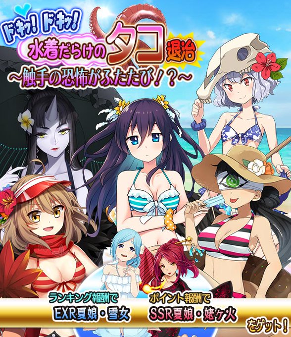 アプリのまじん - 『妖怪百姫たん!』にてイベント「ドキッ!×2 水着だらけのタコ退治 〜触手の恐怖がふたたび!?〜』開催! https://t.co/W01KzD0mbA #百姫たん