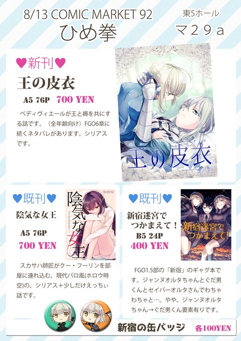 【C92新刊】サークル:ひめ拳、スペース:3日目東マ29a
