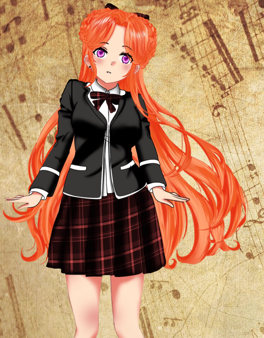 Here's an early sprite for Haruka, back when we were still figuring out what her default pose and expression should be. A bit too wooden, right? It improved a lot for the final version!