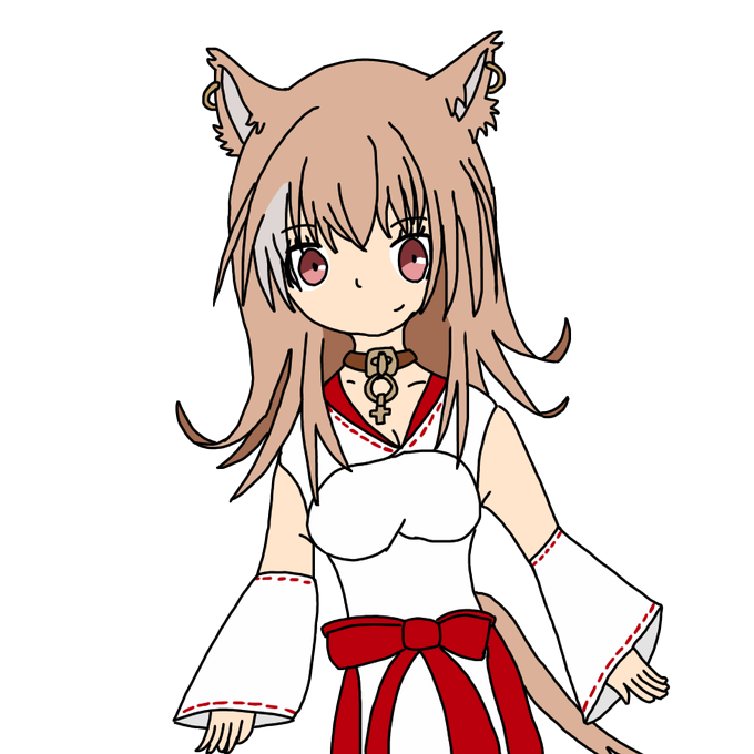 かるるんの種族は狐、狐といえば巫女さんもやってる感じもあったので、巫女服描いて見ました