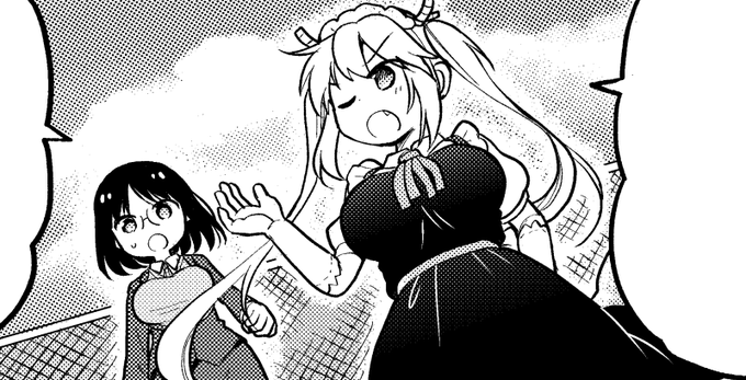 告知絵がなくて申し訳ないです!月刊アクション発売です!小林さんちのメイドラゴン本編・カンナの日常・ルコアは僕の××です。とともにエルマのOL日記もよろしくお願いいたします。今月は不倫を目撃したエルマがトールとなんやかんやする話です!