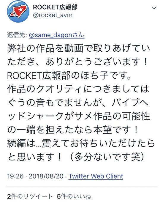 コカ・コーラ社から商品レビューを感謝されたVtuberさんがいるようですが、私はサメAVをレビューして制作会社の広報からリプライを貰い、ついでにJAWS OF THE SHARKの監督からもコメントを貰いました。