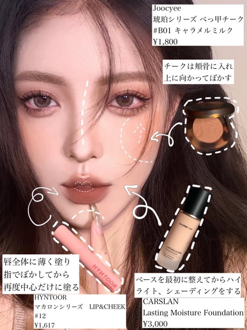 ✔︎ チークは頬骨に入れ上に向かってぼかす