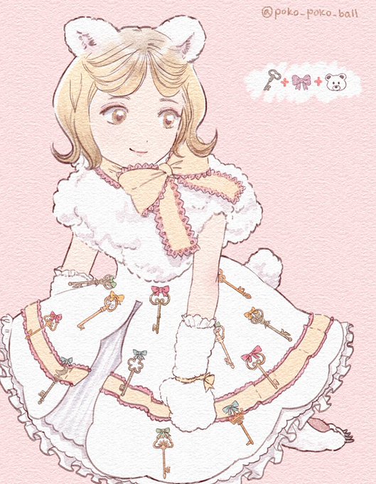 今回の絵文字:🗝🎀🐻❄️ (#リプきた3つの絵文字でキャラデザする)より #創作 #イラスト #女の子イラスト