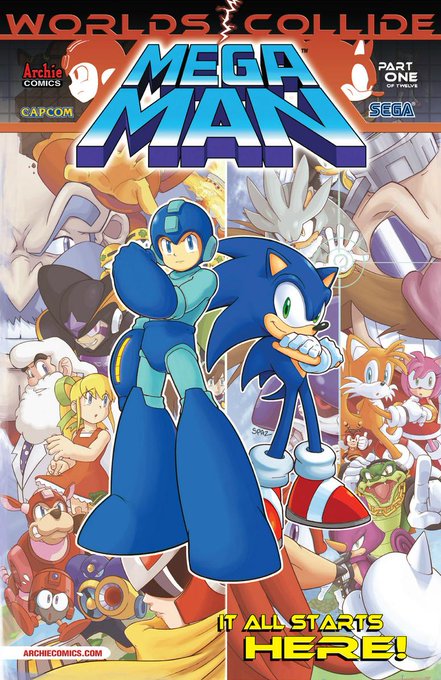 同じArchie Comic社が手掛けている作品と言う事で、ロックマンとソニックによる夢のクロスオーバーが実現!ロックマン24話・ソニユニ51話・ソニック248話・ロックマン25話では、ロックマンVSソニックが繰り広げる!その後いろいろあって協力し合うんですがねw