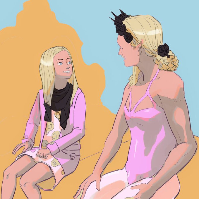 爱丽丝和她收养的人鱼公主,大概在讲睡前冷笑话。图2是没画完的爱丽丝宝贝。