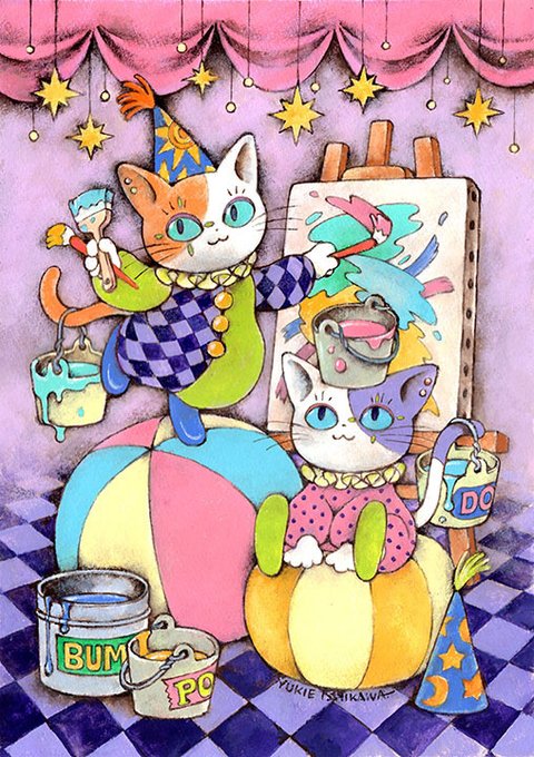 アナログ技法とデジタル技法を駆使し、ヤバみと可愛みの心地よいバランスを探る。老若男女問わずデフォルメされた人物を描くことが得意。