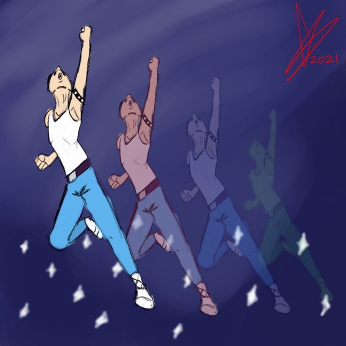 遅れたけどフレディマーキュリーの誕生日絵を描いてみました。グレプリのポーズを参考にしてます。