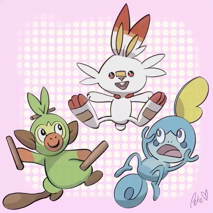 my new loves grookey, scorbunny, and sobble