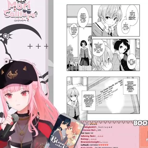 Its great seeing #Takamori stream collab & how both are enjoying "Bloom Into You" especially Calli.