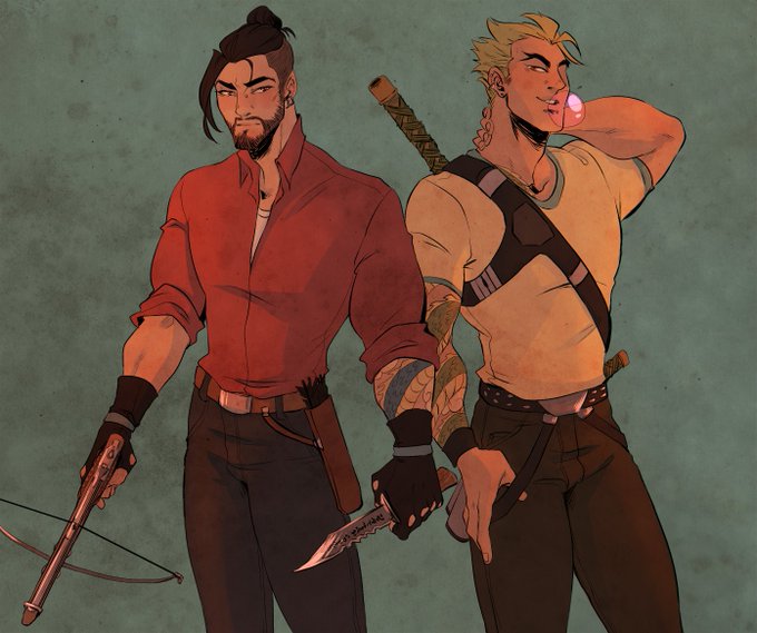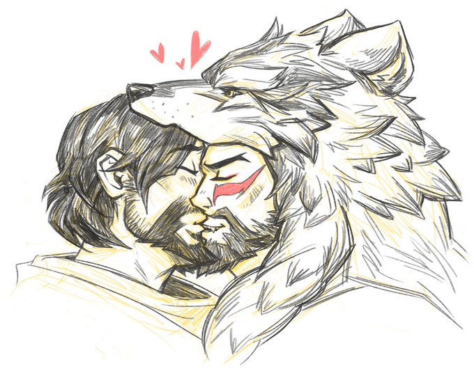 @H4N2O THINKS wolf hanzo's beard > mccree's beard. I DISAGREE so I drew them making out w/hot beard on beard action. We're calling it a draw