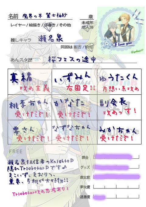 瀬名泉狂信者のKnightsPな腐女子です!