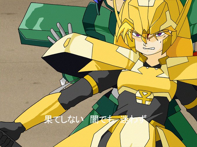 色が塗れて、Flash上で並べては作画ミスと色パカに気付いて都度修正して時間かかりました。前のカットで殴り飛ばされた美沙さんがパワーアップして金色になります。でも元々黄色い人だから変化が分かり辛いかもですね…(GIF)