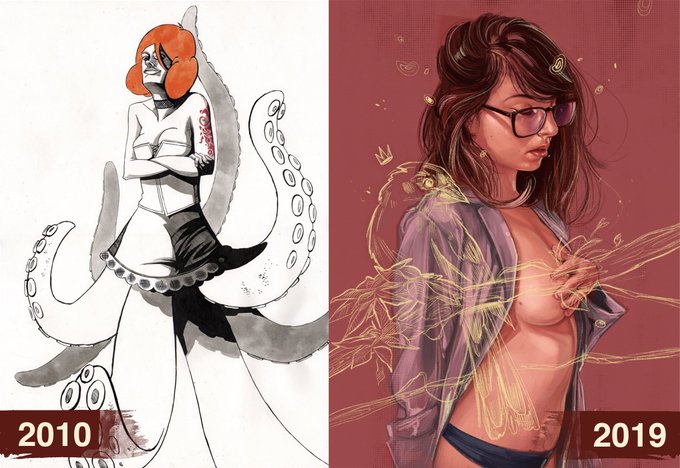 Ayer me encontré por casualidad con el dibujo de la izquierda, y comparado con uno de hace un mes, hay un señor cambio.