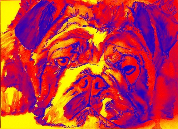 British Bulldog Giclee art print Modern yellow red blue wall art P… https://t.co/azKMHII8L3 #dogsoftwitter #painting