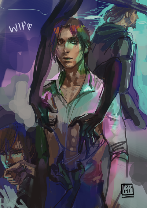 A friend was drawing McCree with long hair. So lo and behold short hair Hanzo to match :y