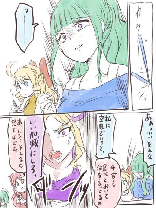 ポッキーの絵のとき、ラファは大食いキャラなのかという話になったので、我が家の天使たちはこうなってます。大食いの順番から、ラファ→ウリ→ミカ→ガブ→ルシとなってます。ラファは宇宙。