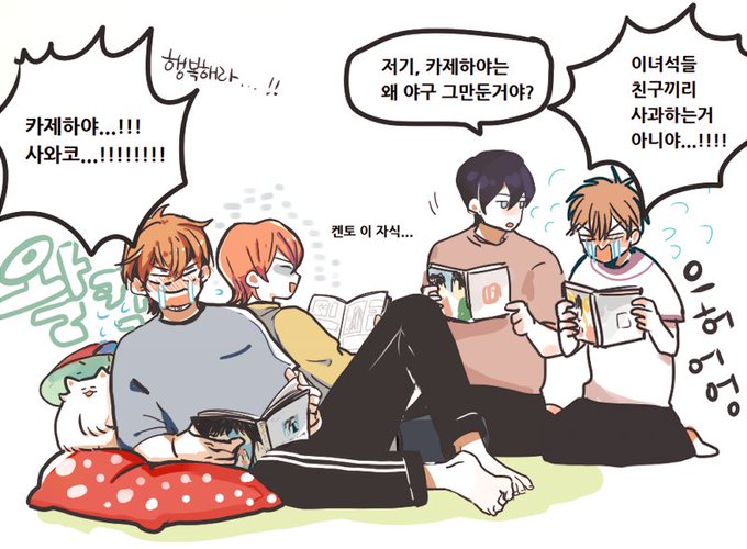 원작에서 준이 순정만화 보는거+에이준이 너에게 닿기를 보는게 귀여워서 두개 섞어서 낙서ㅋㅋ 솨랑 후는 가끔(?) 이상한걸 경쟁하던데 선배들 음료수 심부름도 경쟁할것같음ㅋ 결론은 둘이 귀엽다는거ㅋㅋㅋ첨엔 얘네 둘이 강백호-서태웅 같은 관계될줄 알았다..