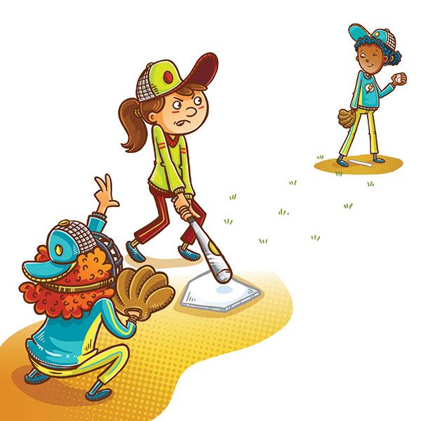 Baseball anyone? Two new spot illos for the July issue of @Pocketsmagazine #kidlitart #baseball #BFFS