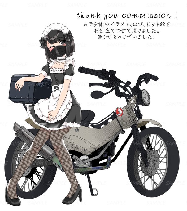 かっこよくカスタムされたバイクと共に可愛らしいお姿を描かせて頂きました。