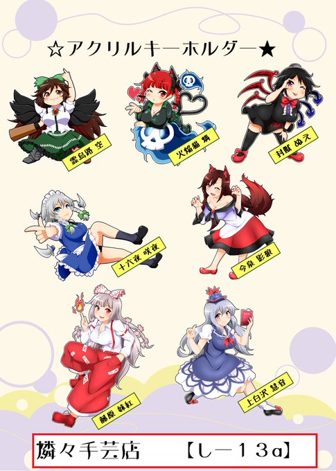 こんばんわー!週末の文々。新聞友の会にて、燐々手芸店は「心ー20」でスペース戴いてます。ミサンガ、レジンアクセサリー、アクキー、缶バッチを頒布します!