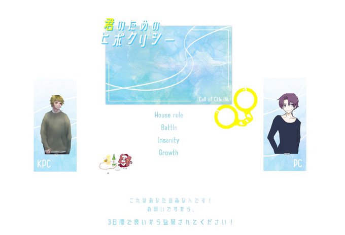 あいことば組で行ってきましたぁ!溢れる思い伝えたら両思いになりました!御付き合いはまだ先だけど!心はひとつだからなぁ!!!あと、1c7Fってなんですか?どういう了見ですか?暫く衛輔には飲酒させます。ちなKPたちは酒盛りです。