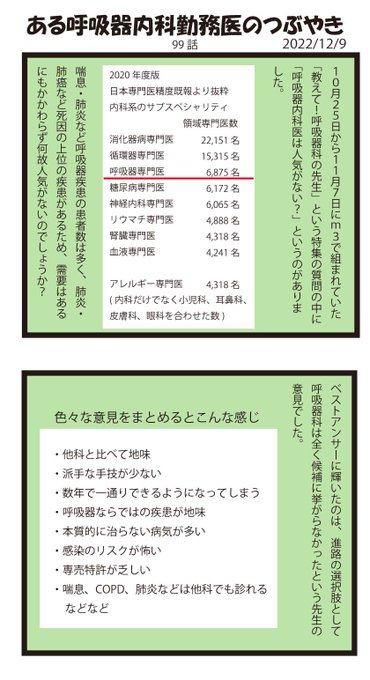 こういうのがあるから呼吸器内科は人気がないのかな?やりがいはあるんだけど年取ってきたので、翌日がちょっと辛いかな…