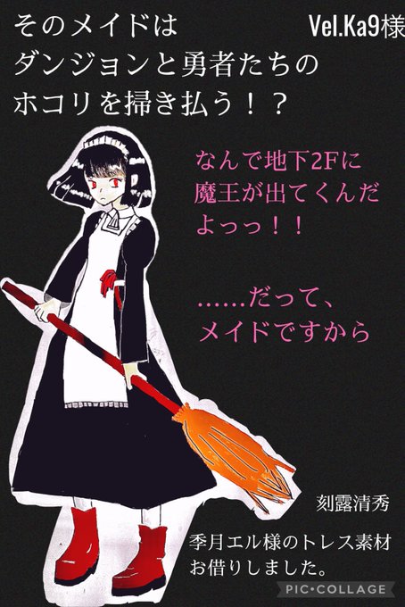 メイドな魔王様のファンアートを(勝手に)描かせていただきました。『そのメイドはダンジョンと勇者たちのホコリを掃き払う⁉︎』は、魔王はやっぱり魔王なメイド魔王様が素敵で、しっかり怖さもあるホラー短編なので、未読の方は是非
