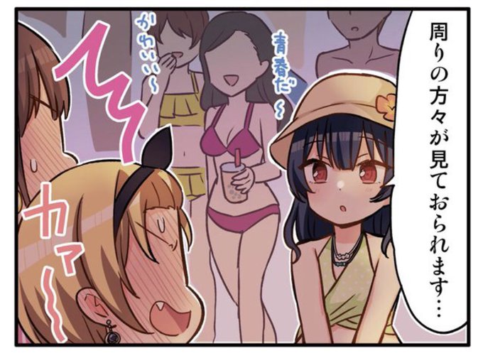 お題箱より、海で夕日に照らされながらキッスするシーンです!