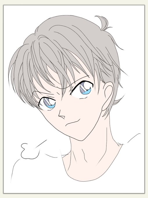 そーいえばここ最近、とあるゲームのキャラを参考にして(全く違う髪型だけど💦)実験的に描いてる新ちゃんの髪型。