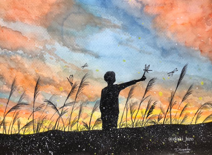 今日のお絵描き。シンガーソングライター、坂本タクヤさん(@takuya0000718 )の楽曲「帰ろうか」のイメージ水彩イラスト。夏の終わりの感じをイメージしてみた。