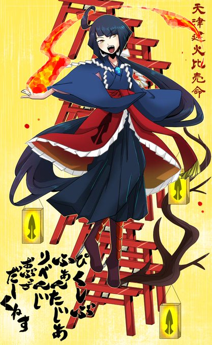 元々ハッシュタグ遊びから生まれたPFRDのキャラ。戦いと火の神様。自信の祠がある集落を復活者たちに荒らされ神通力が低下。結果幼い見た目ですごしている。描きやすいのでよくラクガキに登場する。実はヒールが日本刀の切っ先になっている。