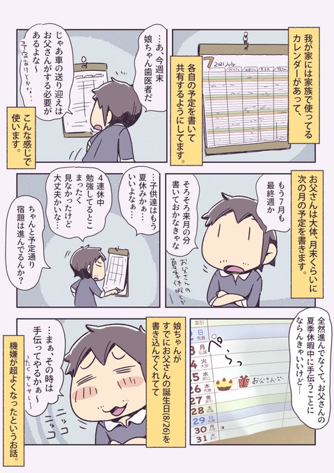 家族の予定カレンダー #一日一絵 #1Pマンガ #絵日記