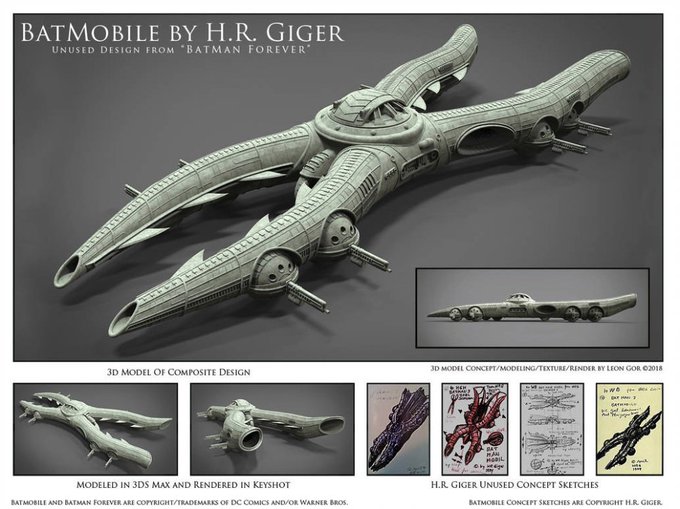 Wow! H.R. Giger was contacted to design a new Batmobile for Batman Forever in 1994 not exactly sure what they were expecting?🤔😄👌