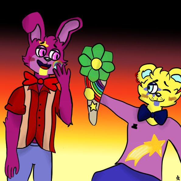 A little drawing for @glaamrockz , I hope you like it, the idea came to my head and I had to do it x3 ❤️✨(And yes my bear looks like some kind of glamrock GF) #FNAF #fnafsb #GlamrockBonnie #fronnie