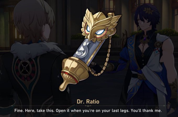 Its like Ratio not only believes, but /knows/ Aventurine could come out alive even in the extreme likelihood of dying, it’s just a matter whether he wants to continue living or not…so through this advice, he gave him the last push to stay alive