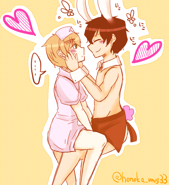 【アンアサ】素敵な4月馬鹿たちをありがとうございました! #右眉深夜の真剣お絵描き60分一本勝負 /親分「発情期のうさぎさんに付き合ったて~」眉毛「当病院は動物の受診を行っておりません」親分「連れんこと言わんでーな♡」眉毛「…はあ」