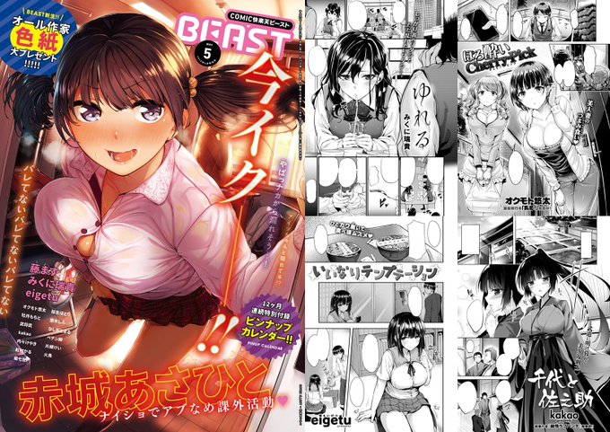 【明日発売】『快楽天ビースト5月号』は<赤城あさひと/みくに瑞貴/eigetu/オクモト悠太/牡丹もちと/武将武/kakaoほか>でお届け♥ 立ち読みはコチラ→https://t.co/4T5oaHQWHi