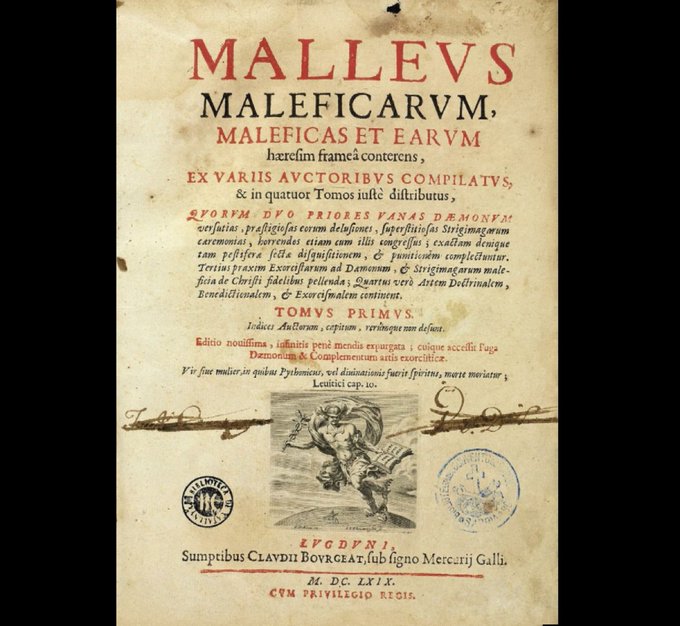 Witch Hunt Manual. The Malleus Maleficarum (14870 or "Hammer of Witches" was a guidebook used to detect witches & heretics, extract confessions & exterminate. It was a bestseller - 2nd only to the Bible from 1486-1600. Scholars estimate witchcraft related deaths at 40,000–50,000.