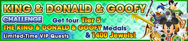#KHUX VIP King&Donald&Goofy Quests P2 available ~4/23 23:59 PT! These quests reward 4 K&D&G medals and 1400 Jewels!