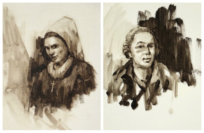 Very pleased to confirm exhibition of literary portraits at @Waterstones Bloomsbury, 29 Oct to 24 Nov, incl these of Gwerful Mechain & Giacomo Casanova, made for @TheTerryVictor's 2017 Edin show Well Thumbed, plus new work focused on writers with specific Bloomsbury connections.