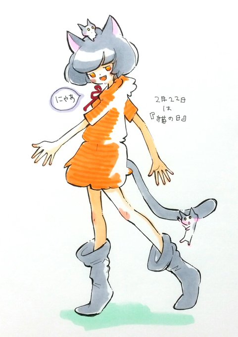 2月22日は「猫の日」 にんにんにん、で忍者の日と迷ったんですが… コピック&マルチライナーで描きました♪ #コピック #今日は何の日 #猫の日