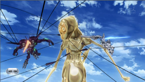 金ぴかエイリアンと主人公二人が頑張って戦います!!!!時折会話も試みます!!!!!面白いです!!!!文句なしにハイクオリティ面白い蒼穹のファフナーを是非よろしくお願いします寝るぞ!!!!!!!!!