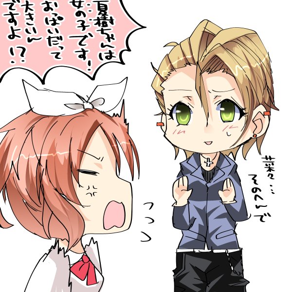 @014x14kb かし君の髪型まねっこ中の三樹ちゃん。 「っ///見んなッ!」とか言って照れる。自分でやったくせに照れる。