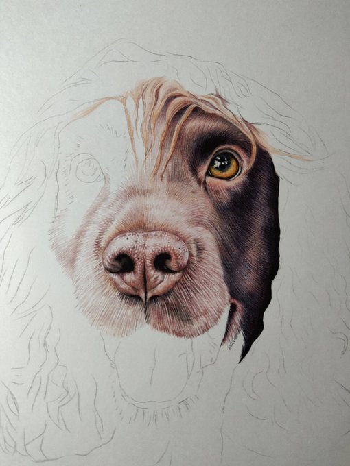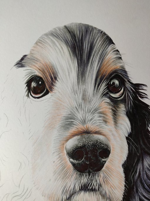 Hope you all had a great weekend! More progress on my latest commission furbaby beauty Lily @cocker @Cockerspansrus @COCKERSPANIEL_ @IzzyTheCanine @cockerspanru 👍😊😍💕🐕🦺🐾x #petportraits #commissionsopen #colouredpencils #animalartist #fineart #art #artist #artwork